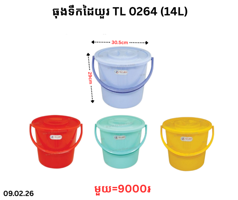 ធុងទឹកដៃយួរ TL 0264 (14L) December 2, 2025 Posted in 9000, TL, ធុងទឹកដៃយួរ, ធុងទឹកដៃយួរTL Barcode : 8936082383842